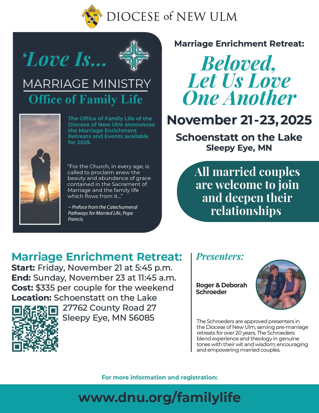 Visit Marriage Enrichment Retreat — Diocese of New Ulm to register.